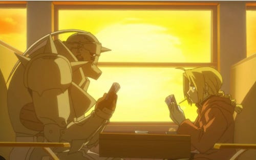 Fullmetal Alchemist is an amazing anime - and the entire plot revolves around the concept of Touka Koukan - "Equivalent Exchange" – the idea that to obtain something, you must sacrifice something of equal worth.